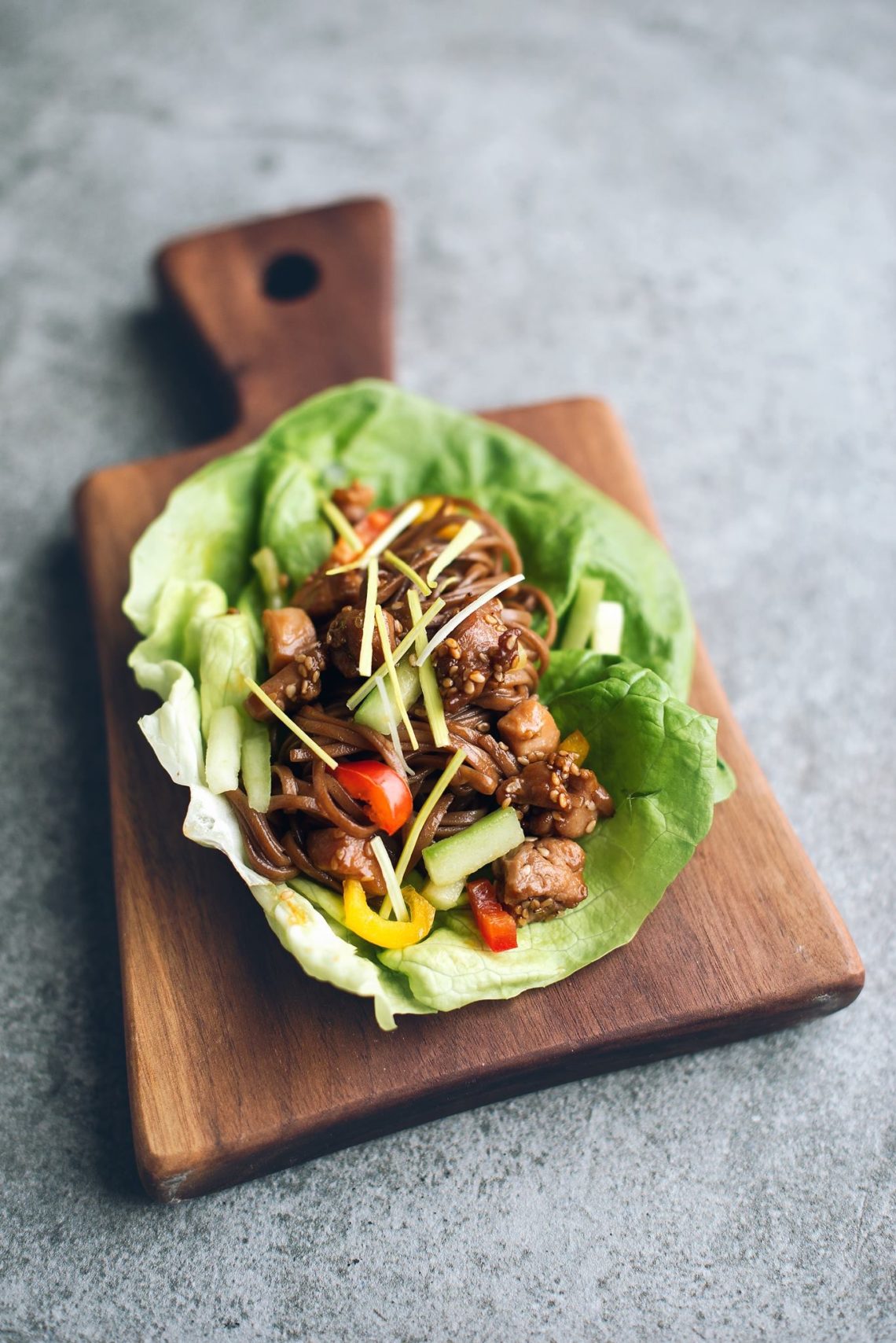 Priprava je res enostavna. Najprej izberete lepe notranje list solate, ki so velikosti otroške dlani, jih dobro operete in osušite. Zelenjavo narežete na ozke majhne trakove. Sestavine za preliv enostavno zmešate v skodelici in preliv je pripravljen. Rezance skuhate in še vroče prelijete z azijskim prelivom (malo preliva pustite še za skodelice). Piščančje meso narežete na majhne kose in na hitro popečete, nato pa dodate sojino omako ter rjavi sladkor in kuhate še kako minuto ali dve, da dobite lepljivo omakico. Potem potresete še s sezamom, popečete še kake pol minutke in piščanec je pripravljen.